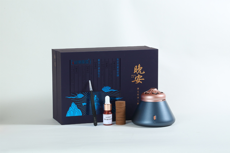 現代人生活壓力大,很多人存在不同程度的睡眠問題。 古城香業傳承國家級非物質文化遺產清苑傳統制香技藝,在中國古代隔火熏香的基礎上,創新地將傳統元素與現代工藝相結合研發電子熏香器,采用海南沉香、香杉粉、酸棗仁研制成安神助眠熏香片,搭配由薰衣草油、檀香油、甜橙花油調制而成的熏香精油,通過程序變溫加熱緩釋技術使甜美的花果香、醇和的沉檀香氣持久縈繞,在深度睡眠中與您相遇。